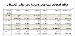 برنامه امتحانات شبهه نهایی کشوری- فروردین و اردیبهشت ۱۴۰۳