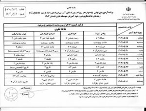 برنامه امتحانات نهایی نوبت شهریور پایه های دوازدهم